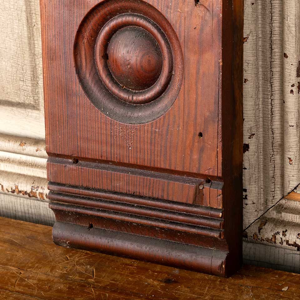 Architectural salvage antique interior window or door wood rosette trim block measuring approx. 5 7/8" wide x 12" tall x 1 3/8" front to back. Color and condition may vary, see photos to evaluate. Priced at $45/each.