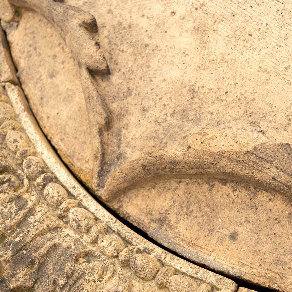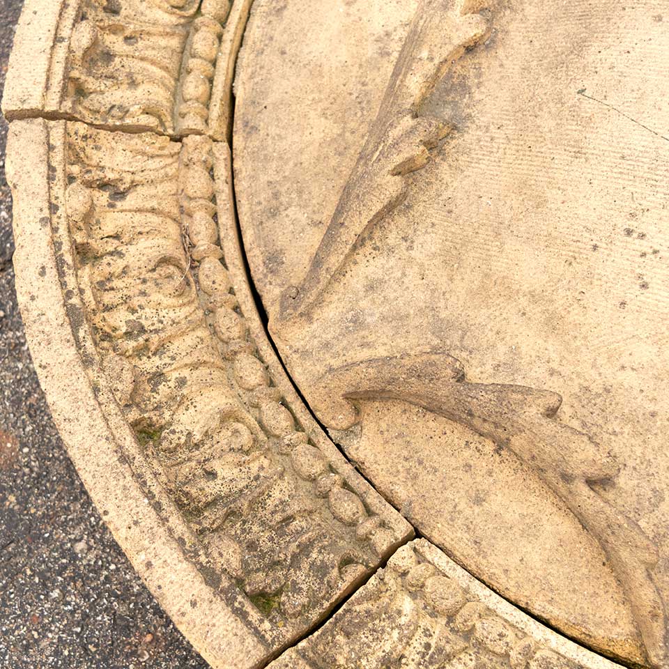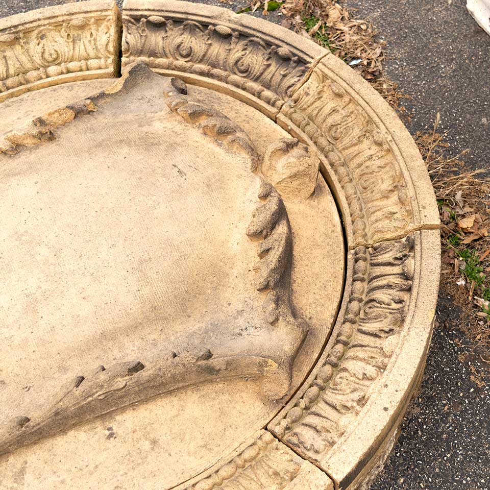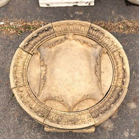 Architectural salvage antique nine piece terra cotta building medallion measuring approx. 42" in diameter x 7 1/2" front to back. This beautiful artifact was saved from Union Station in Columbus, Ohio when demolished in 1979. The train station was constructed in 1897 and designed by renowned Chicago architect Daniel Burnham. This is great opportunity to acquire a wonderful piece of architectural history. See photos to evaluate condition.