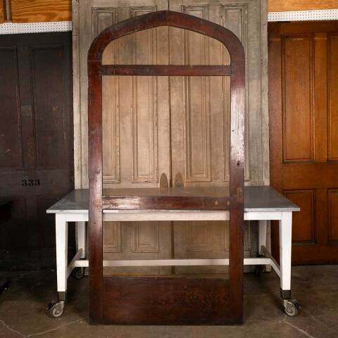 Architectural salvage antique oak wood pointed arch screen door measuring approx. 43 7/8" wide x 88 1/2" tall (at center) x 1 1/8" thick. See photos to evaluate condition.
