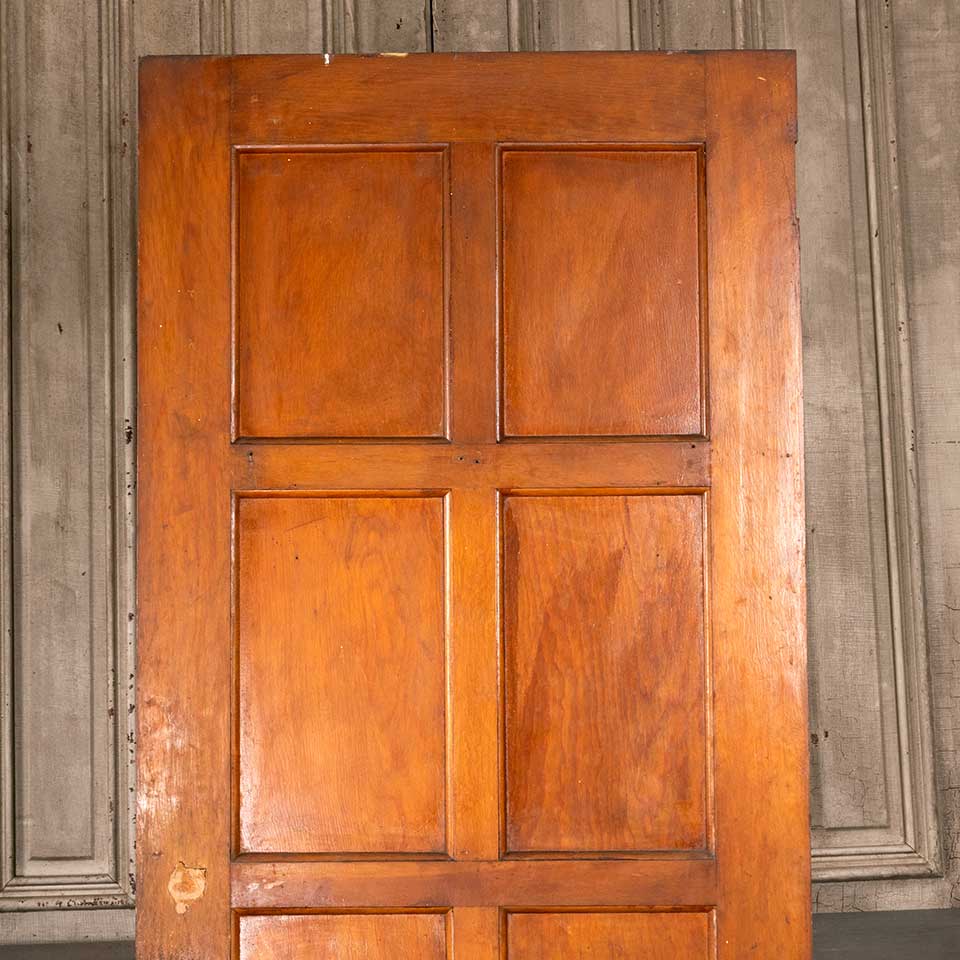 Architectural salvage antique wood eight panel interior door with mortise lock measuring approx. 29 3/4" wide x 79" tall x 1 3/8" thick. There's wood filler in the former lock holes. See photos to evaluate condition.