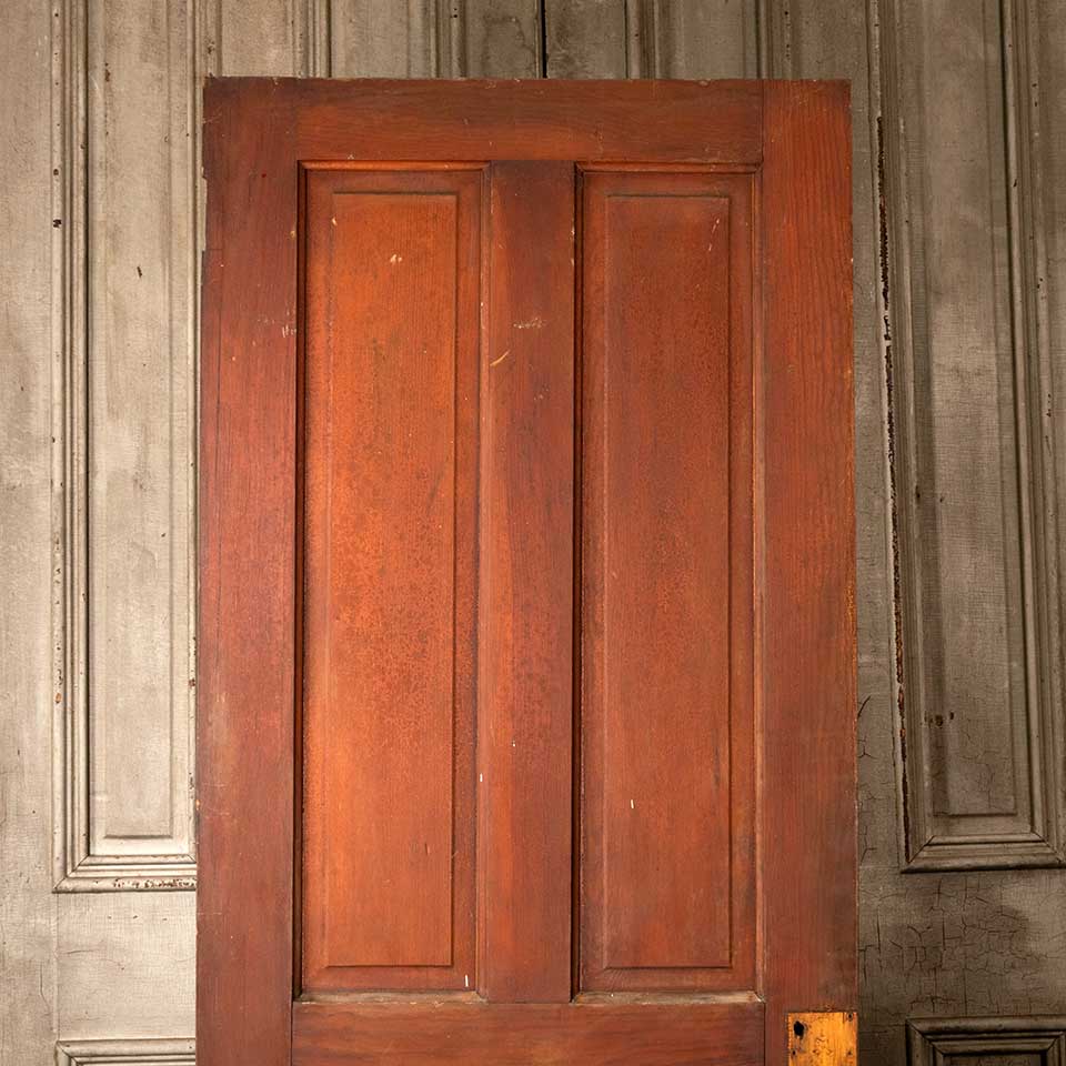 Architectural salvage antique pine wood four panel interior door measuring approx. 29 13/16" wide x 76" tall x 1 3/8" thick. See photos to evaluate condition.