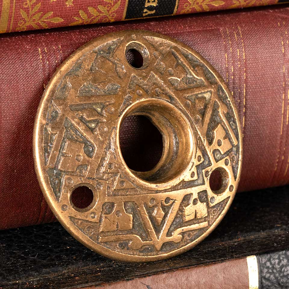 Architectural salvage antique ornate bronze doorknob rosette door hardware measuring approx. 2 1/8" in diameter with a 3/4" diameter collar. See photos to evaluate condition.