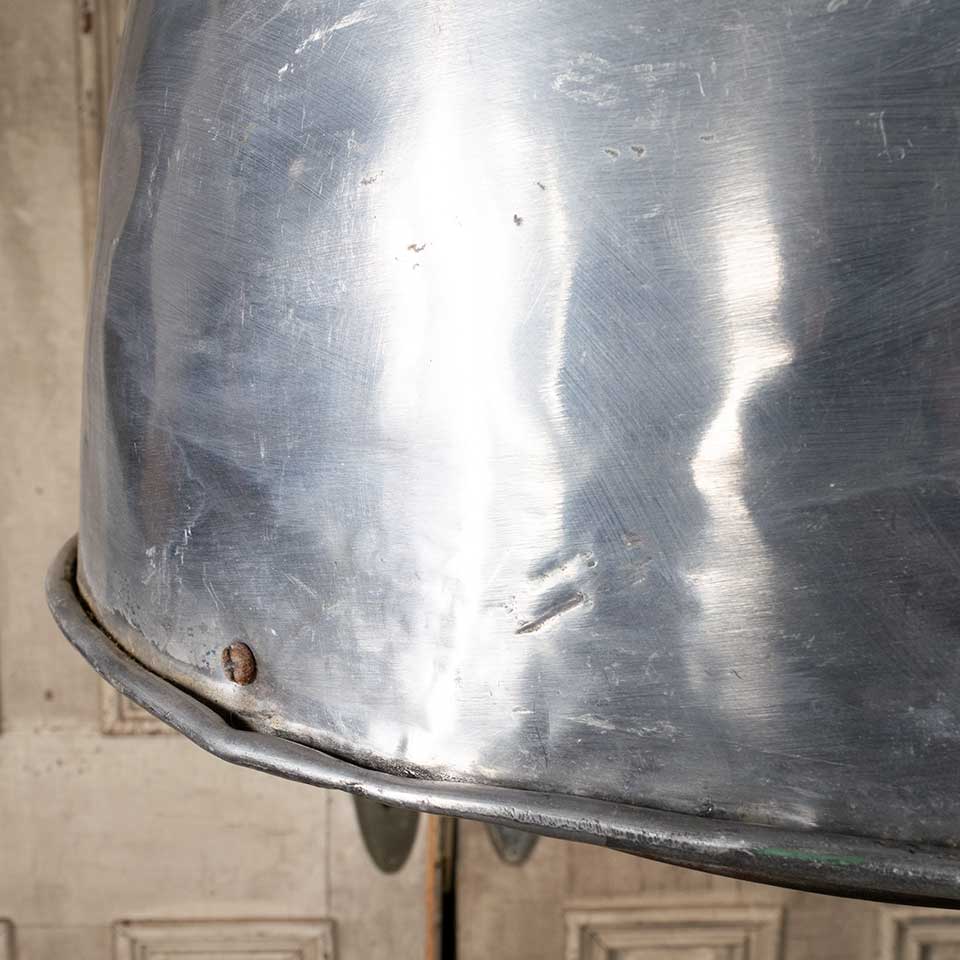 Architectural salvage large industrial style metal light fixture with protective cage measuring approx. 16 3/4" in diameter x 29 1/2" tall. See photos to evaluate condition. Salvaged lighting should be inspected by a licensed electrician prior to installation.