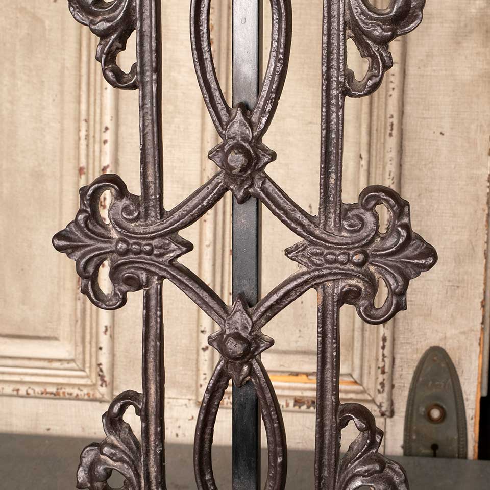Pair of cast iron architectural salvage table lamps each measuring approx. 11 3/8" wide x 31 1/2" tall with a 12 3/4" x 6" base. See photos to evaluate condition. Salvaged lighting should be inspected by a licensed electrician prior to installation. Priced at $375 for the pair.