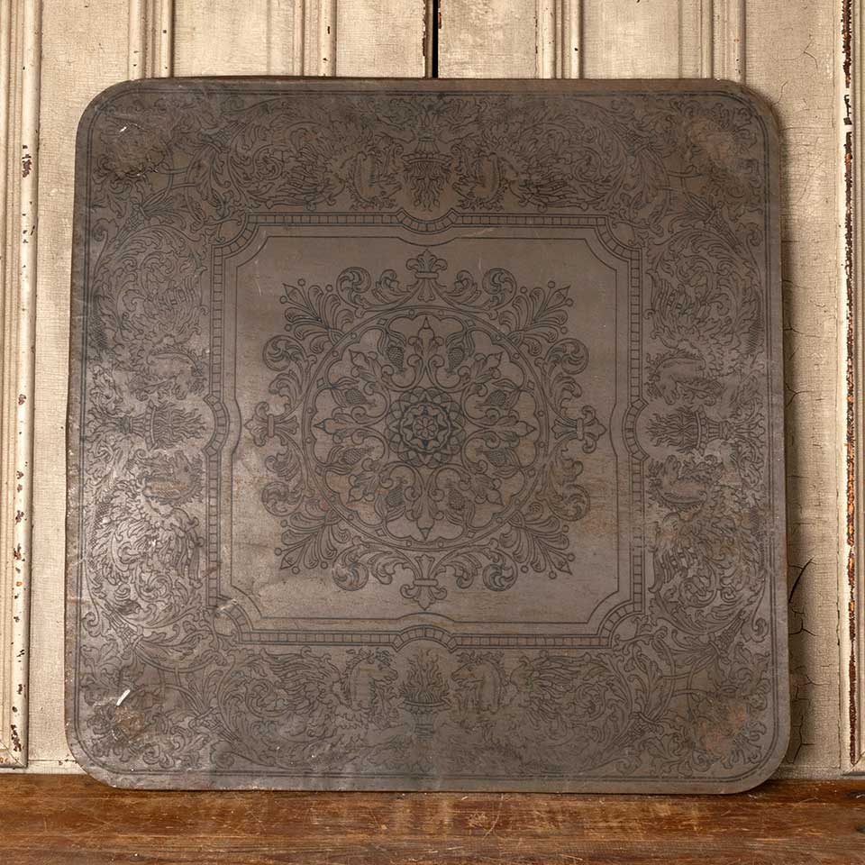 Architectural salvage antique wood and metal WABASH No. 3 CRYSTALIZED parlor stove mat board measuring approx. 33 1/8" x 33 1/8" x 1/2" front to back. This piece was manufactured by the Wabash Screen Door Company of Minneapolis, Minnesota. See photos to evaluate condition.