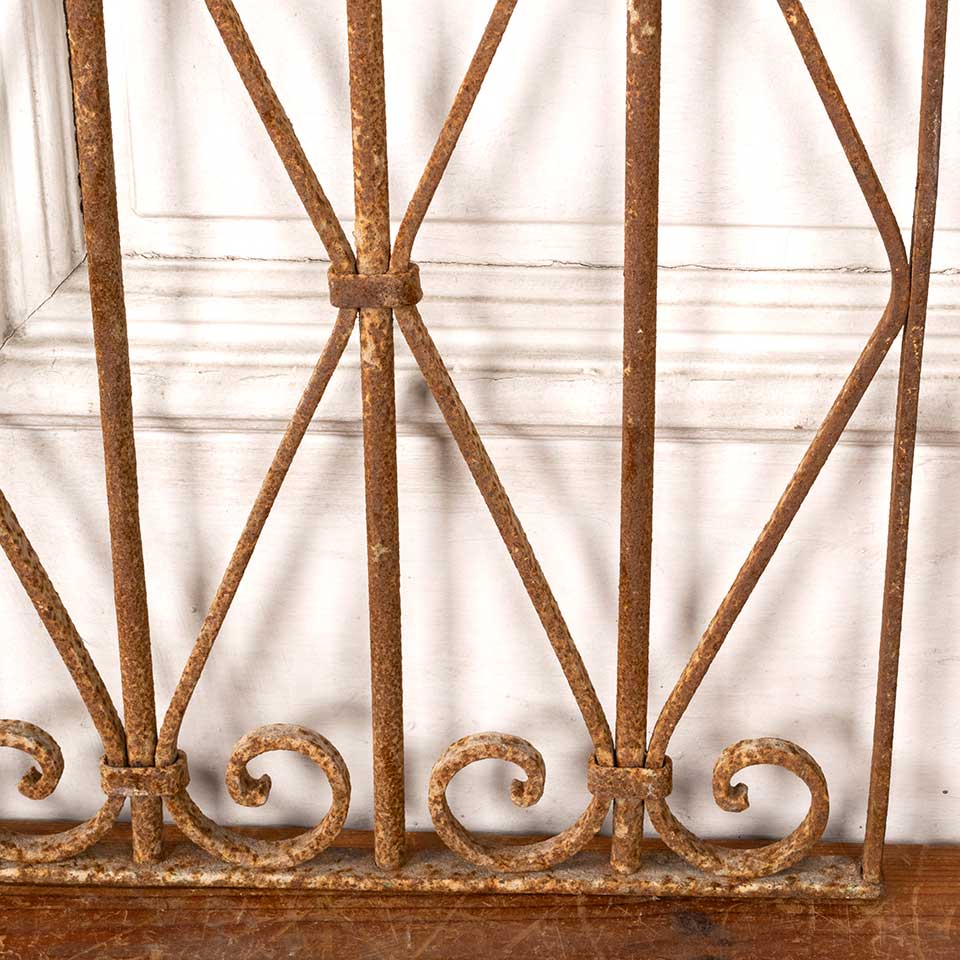 Architectural salvage antique wrought iron ornamental panel measuring approx. 39 7/8" wide x 20 7/8" tall x 1" front to back. See photos to evaluate condition.
