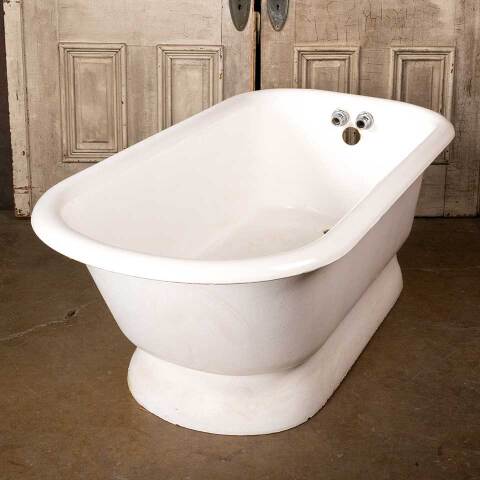 Architectural salvage antique cast iron skirted apron bathtub measuring approx. 30 1/4" wide x 60" long x 22 3/4" tall. This tub may need to be refinished on the inside. See photos to evaluate condition.