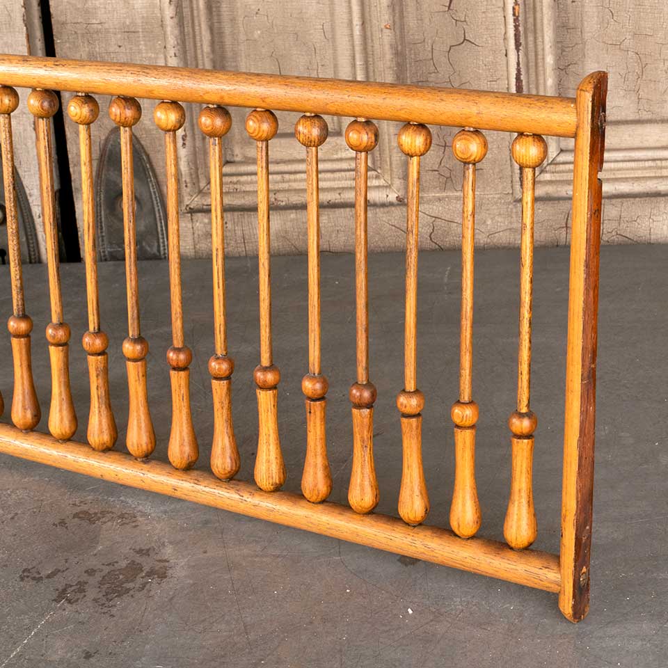 Architectural salvage antique oak wood interior fretwork panel measuring approx. 59 1/4" wide x 13 1/4" tall x 1 1/8" front to back. There's some wood loss on the ends. See photos to evaluate condition.