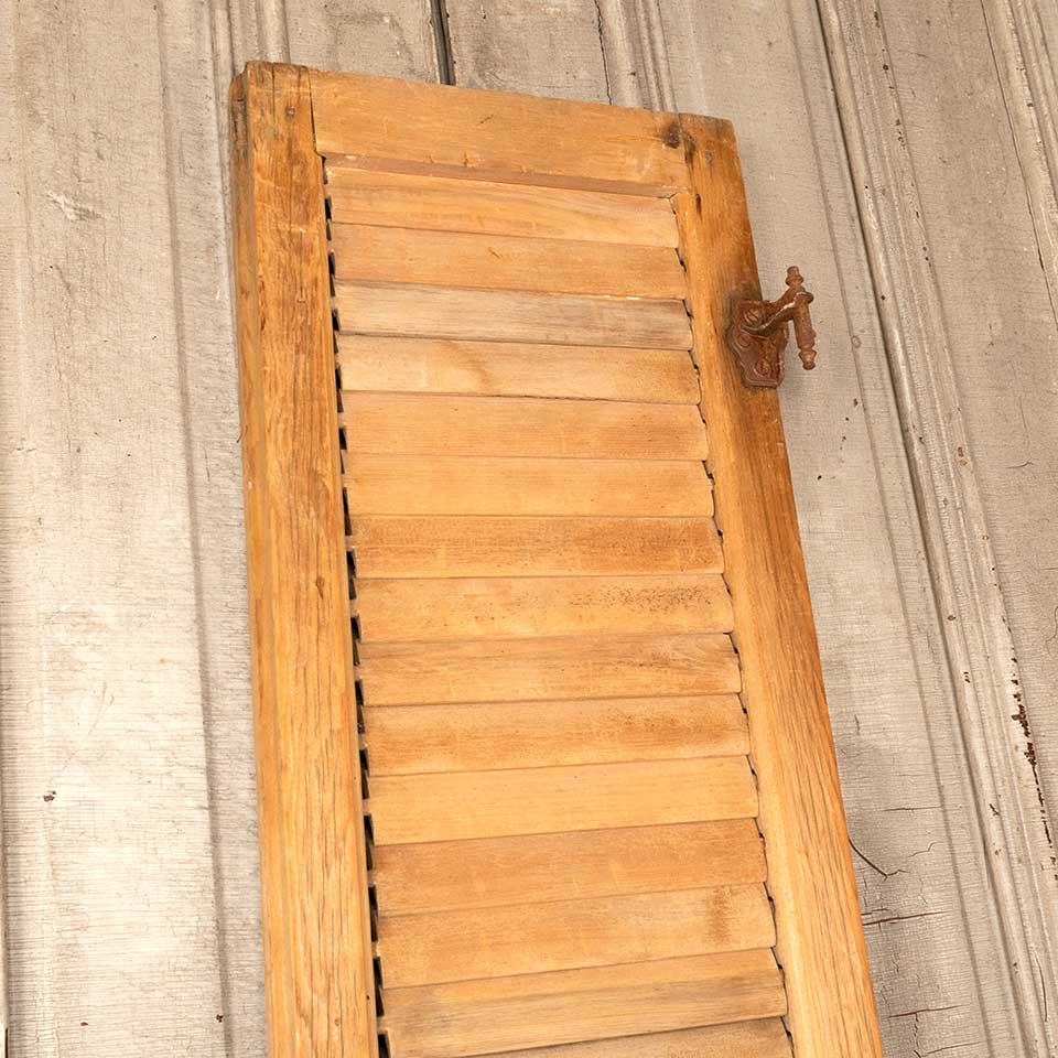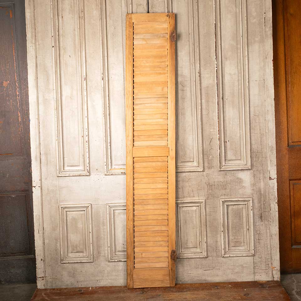 Architectural salvage antique louvered exterior wood window shutter measuring approx. 14 1/2" wide x 80" tall x 1 3/8" thick. See photos to evaluate condition.