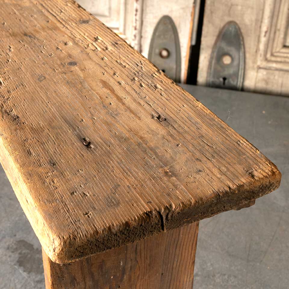 Antique primitive small wood bench measuring approx. 29 7/8" wide x 13" tall x 6 5/8" front to back. See photos to evaluate condition.