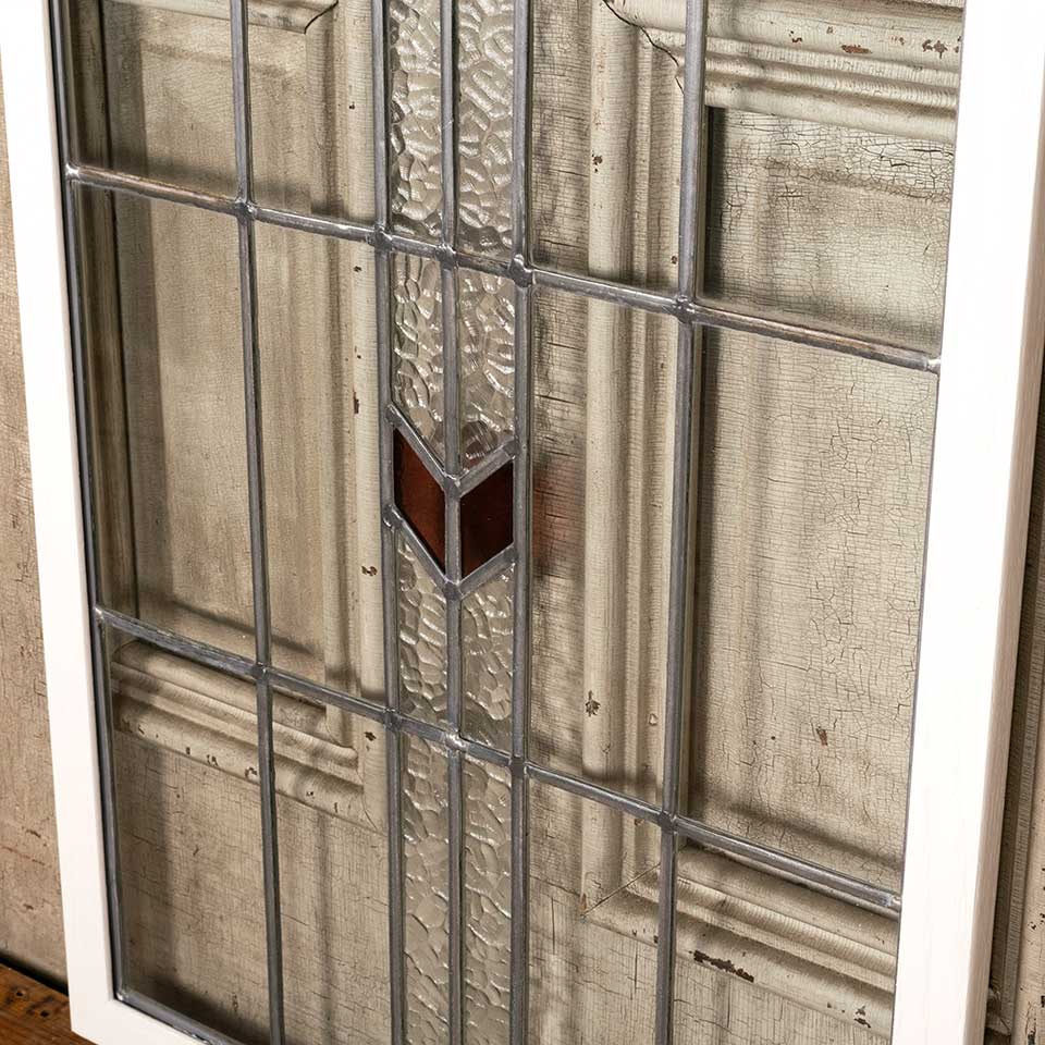Architectural salvage antique stained and leaded glass window measuring approx. 21 3/4" wide x 42 1/2" tall x 3/4" thick. See photos to evaluate condition.