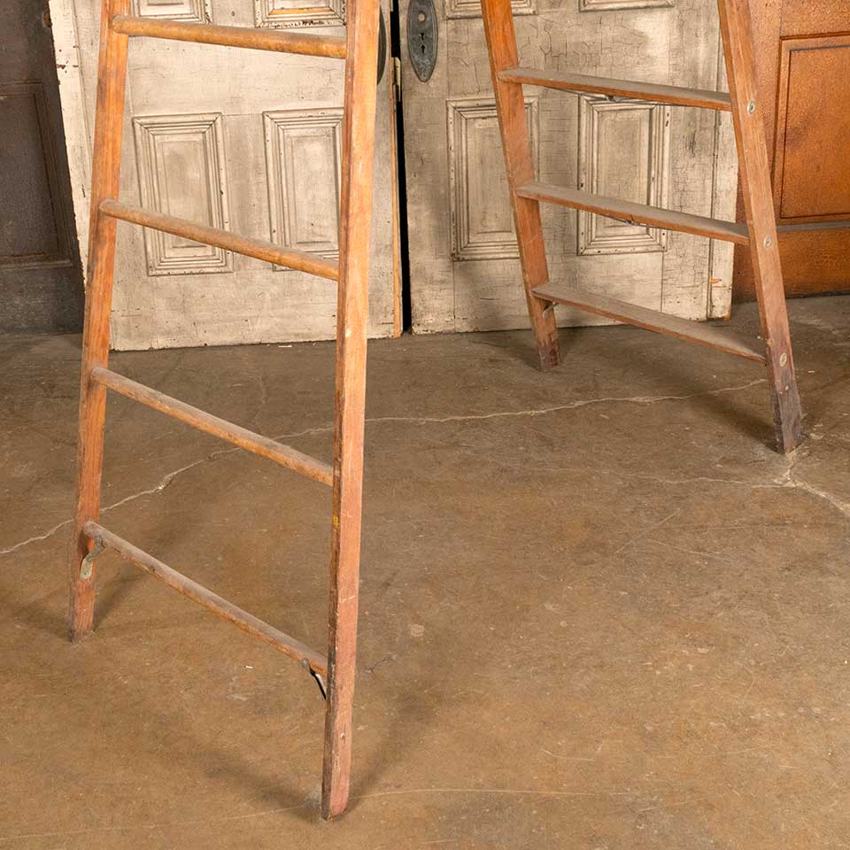 Vintage WERNER nine rung A-frame wood step ladder measuring approx. 28 1/2" wide (at base) x 10' tall x 63 1/2" front to back (at base when extended). See photos to evaluate condition. This ladder is being sold for decorative use only.