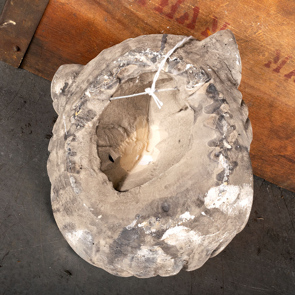Cast plaster architectural lion head relief decorative plaque ornament wall hanging measuring approx. 6" wide x 7 1/2" tall x 4 1/2" front to back. See photos to evaluate condition. Priced at $65/each.