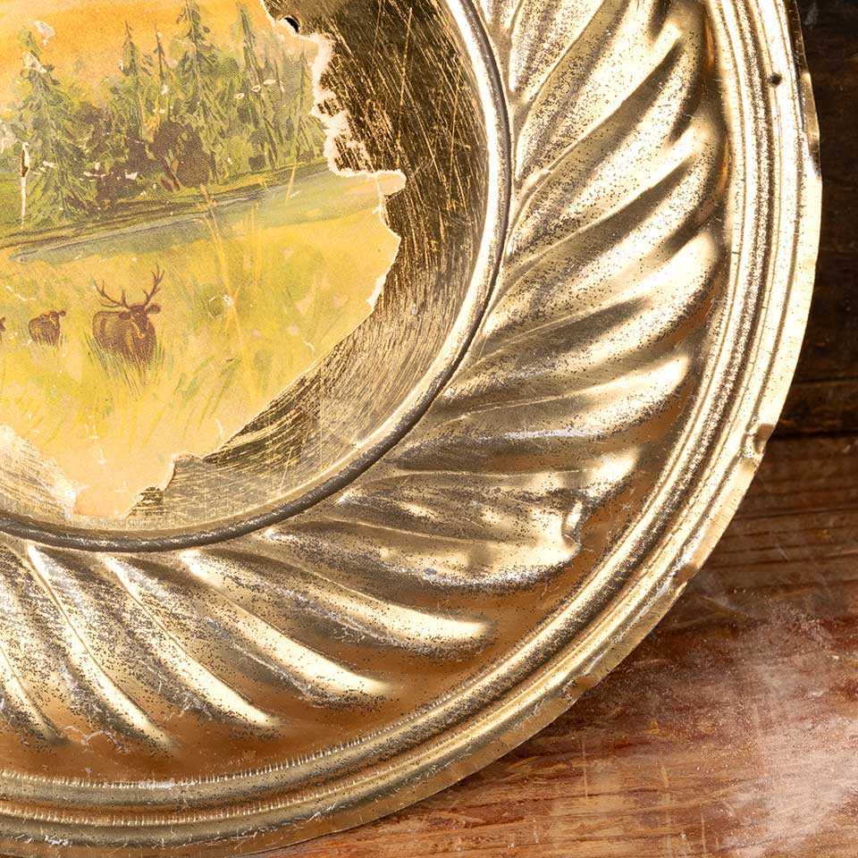 Architectural salvage vintage pressed / stamped metal stove pipe chimney flue cover plate measuring approx. 9 5/8" diameter. See photos to evaluate condition.