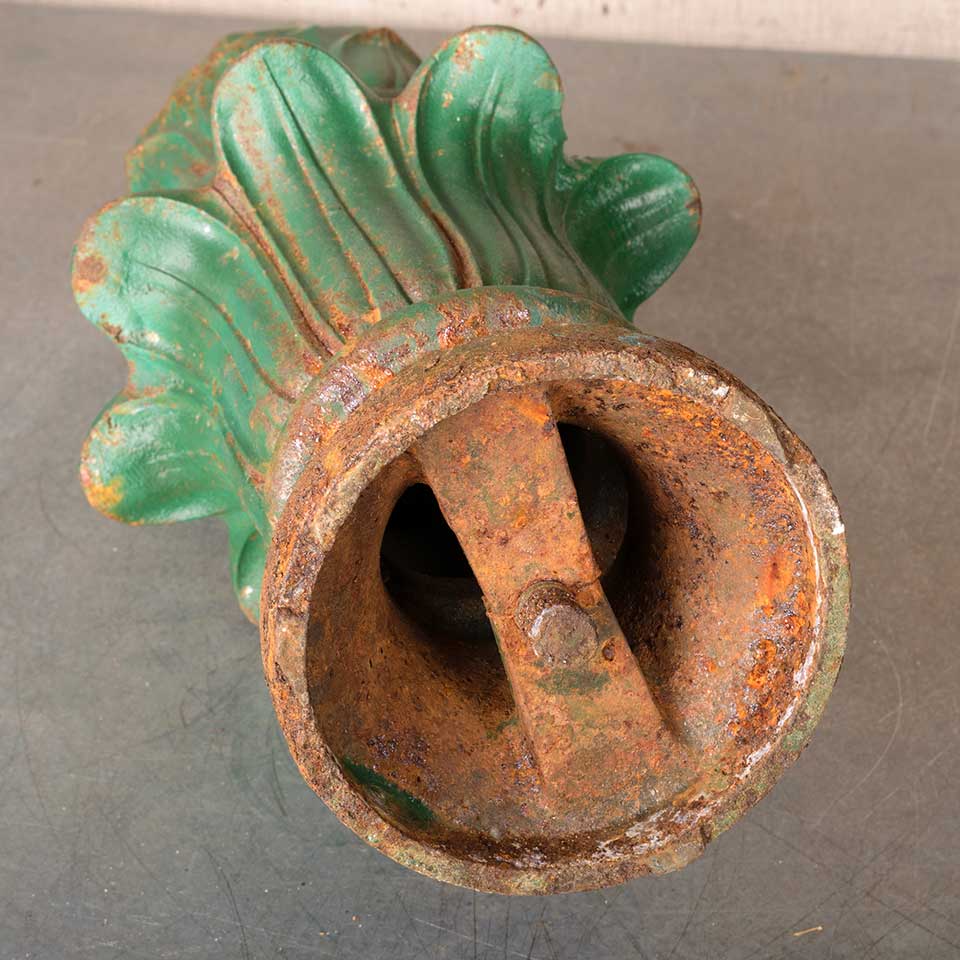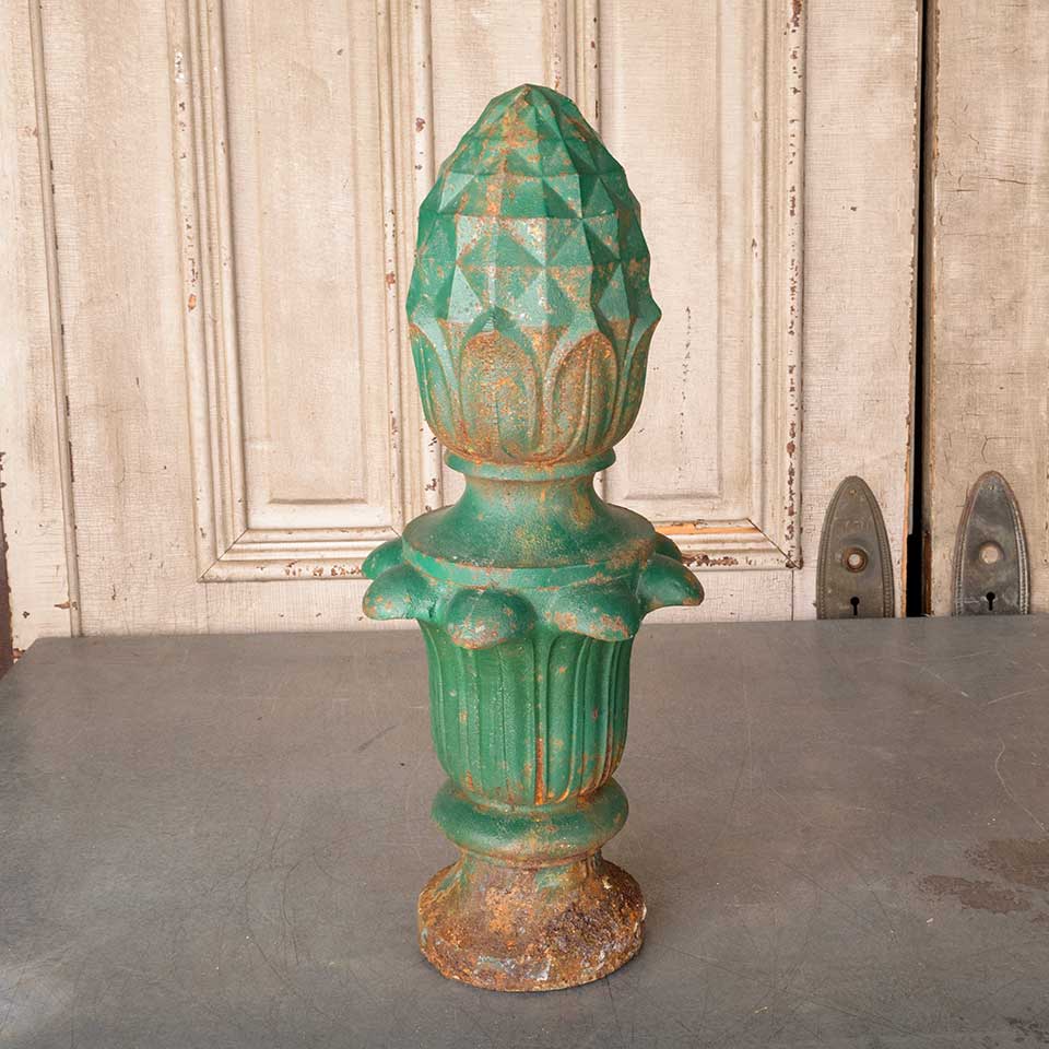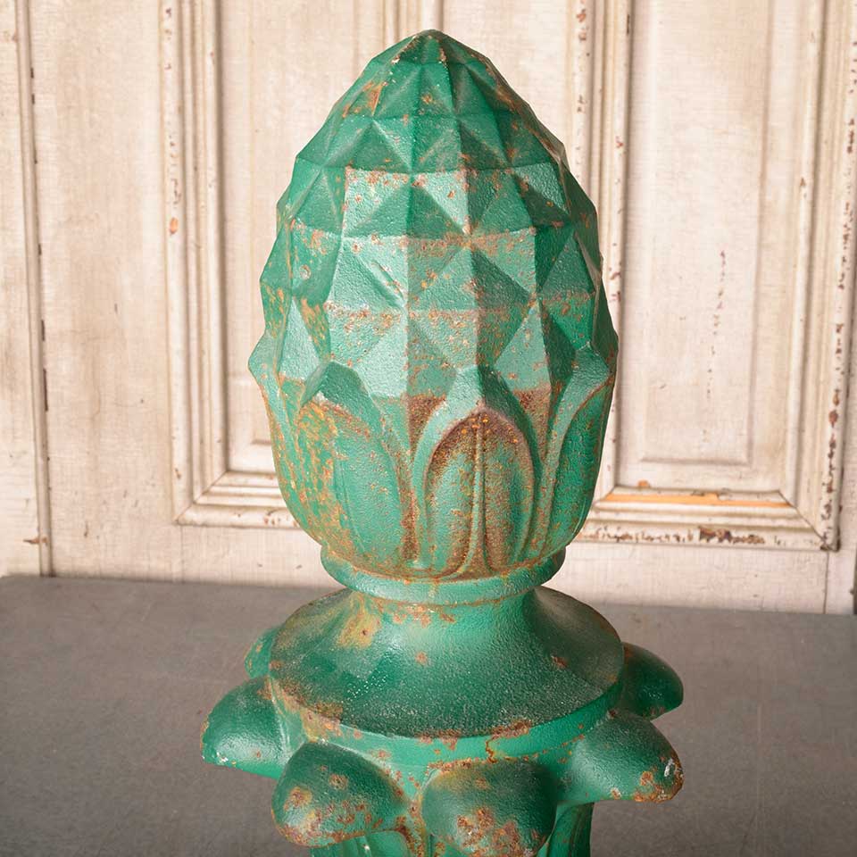 Architectural salvage antique painted cast iron street lamp finial measuring approx. 8" in diameter x 22" tall with a 5 3/4" diameter base. See photos to evaluate condition.