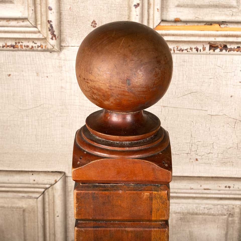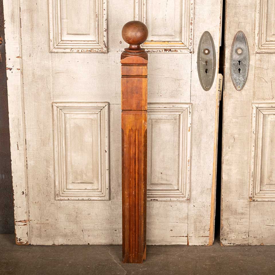 Architectural salvage antique wood staircase newel post measuring approx. 4 1/16" x 4 1/16" x 40 3/4" tall. See photos to evaluate condition.