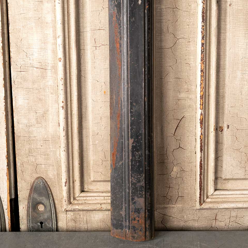 Architectural salvage antique cast iron fireplace surround measuring approx. 29" wide x 31 7/8" tall x 2" front to back. The interior firebox opening measures approx. 20 3/8" wide x 27 1/4" tall. See photos to evaluate condition.