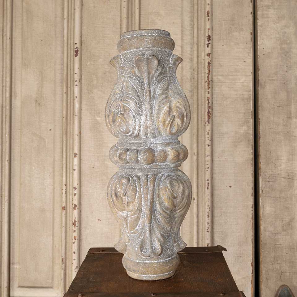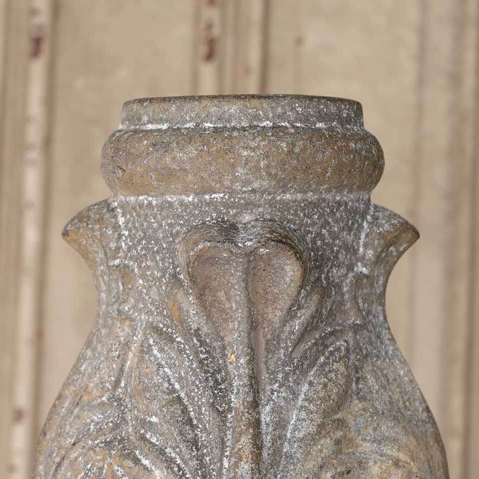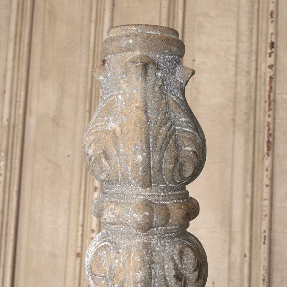 Architectural salvage antique ornamental metal remnant measuring 4 1/2" in diameter x 12" tall with a 2" diameter opening on both ends. See photos to evaluate condition.