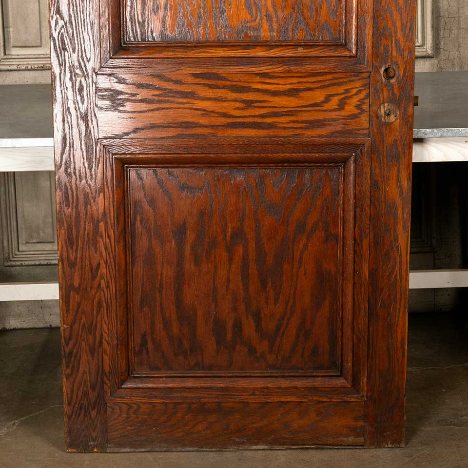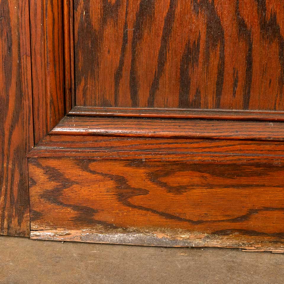 Architectural salvage antique interior two panel oak door with mortise lock measuring approx. 35 3/4" wide x 82 7/8" tall x 1 3/4" thick. There's some veneer damage along the bottom. See photos to evaluate condition.