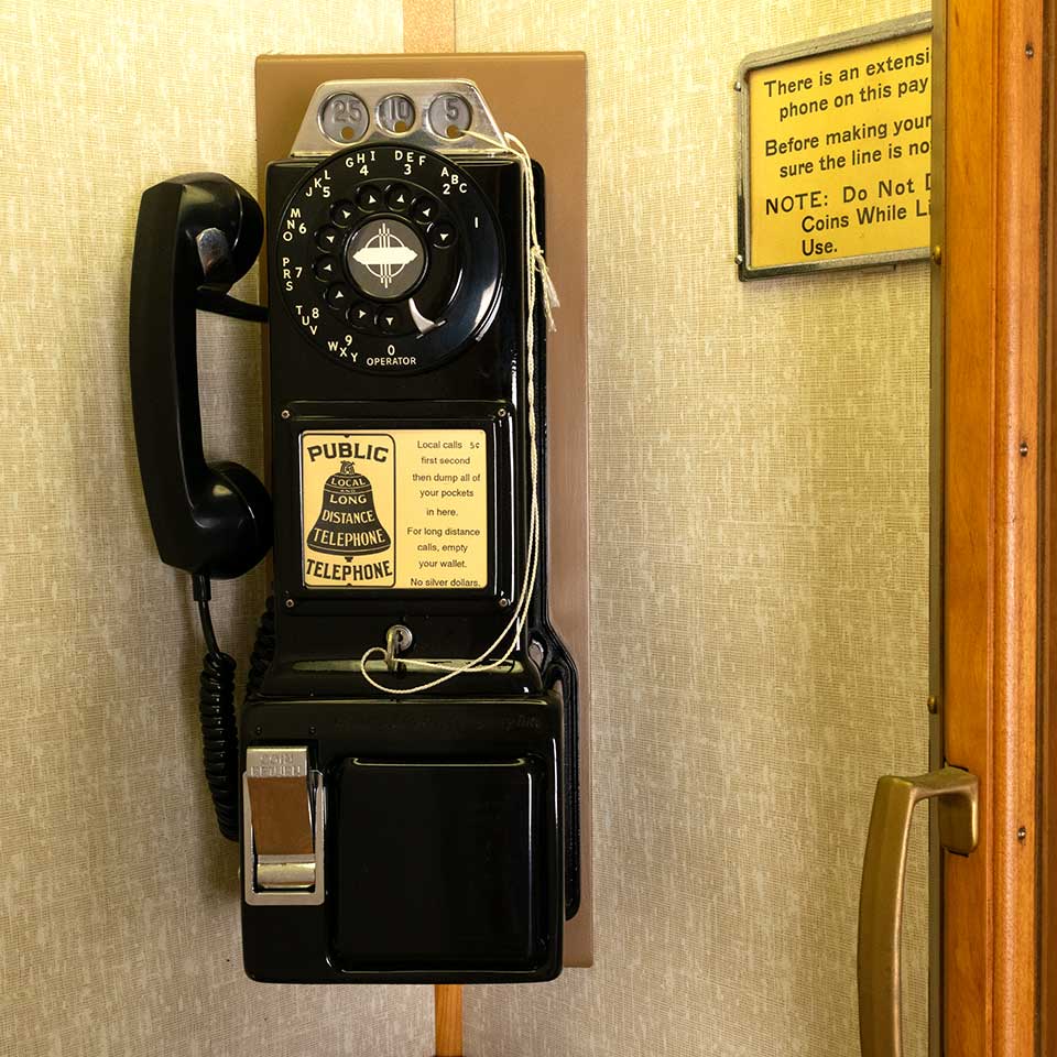 Architectural salvage antique wood public coin operated TELEPHONE booth with operable light measuring approx. 30 1/2" wide x 83 1/4" tall x 30 1/2" front to back. The fan is wired, but not currently working. See photos to evaluate condition.
