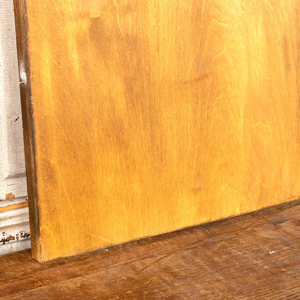 Architectural salvage industrial style wood and metal display board measuring approx. 24" wide x 28" tall (33 1/2" with faux track wheels). See photos to evaluate condition.