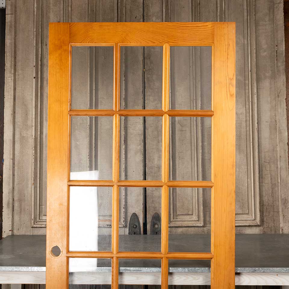 Architectural salvage fifteen lite pine wood interior French door measuring approx. 35 3/4" wide x 79 7/8" tall x 1 3/8" thick. This is not an antique door. See photos to evaluate condition.
