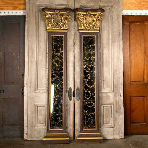 Pair of architectural salvage vintage Casa Bique Furniture mirrored column pilasters each measuring 23 1/2" wide x 95 1/2" tall x 5 1/2" front to back. See photos to evaluate condition. Priced at $4,500 for the pair.