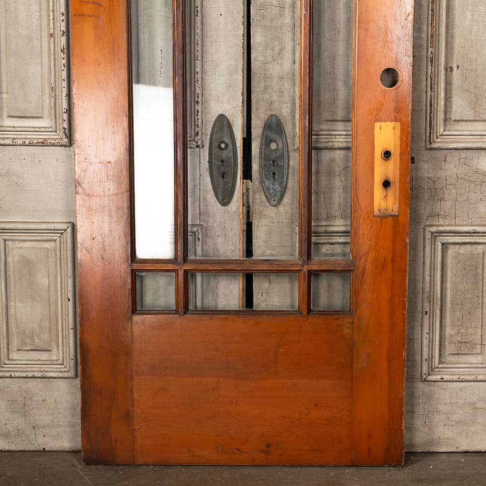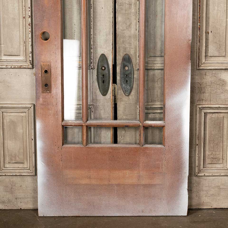 Architectural salvage antique divided nine lite wood entry door with mortise lock measuring approx. 35 5/8" wide x 79" tall x 1 3/4" thick. There's paint over spray on one side of the door. See photos to evaluate condition.
