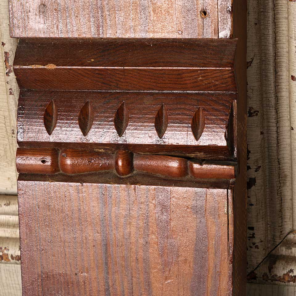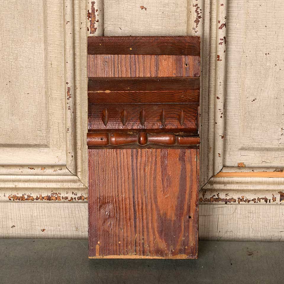 Architectural salvage antique pine wood interior door plinth trim block measuring approx. 5 5/8" wide x 11 1/8" tall x 1 3/8" thick. Color and condition vary.
