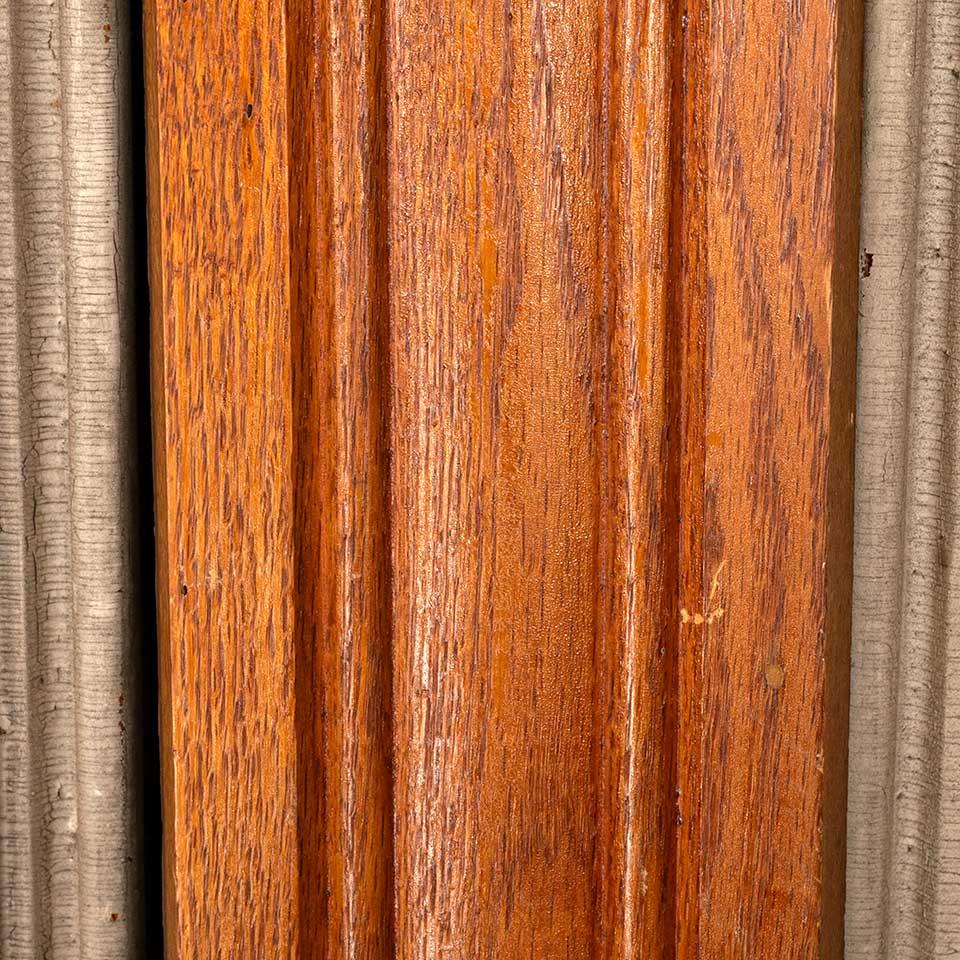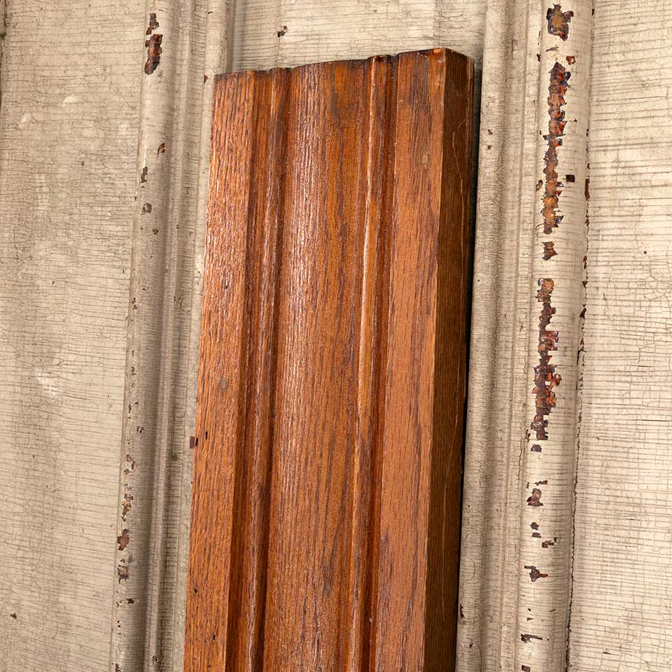 Architectural salvage unpainted antique oak window & door casing trim molding measuring approximately 5 1/4" wide x 7/8" thick. Quantities, lengths and prices as follows: 5 @ 73" ($32.85); 3 @ 77" ($34.65); 1 @ 83" ($37.35); 4 @ 84" ($37.80); 3 @ 88" ($39.60).