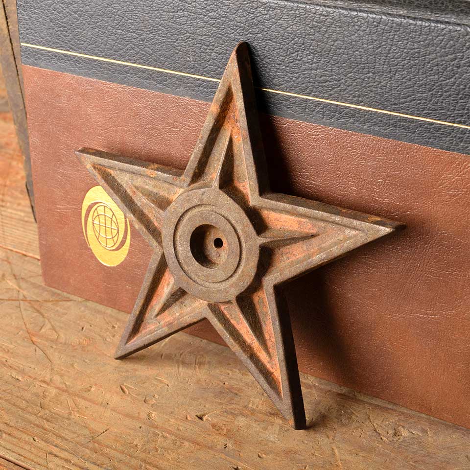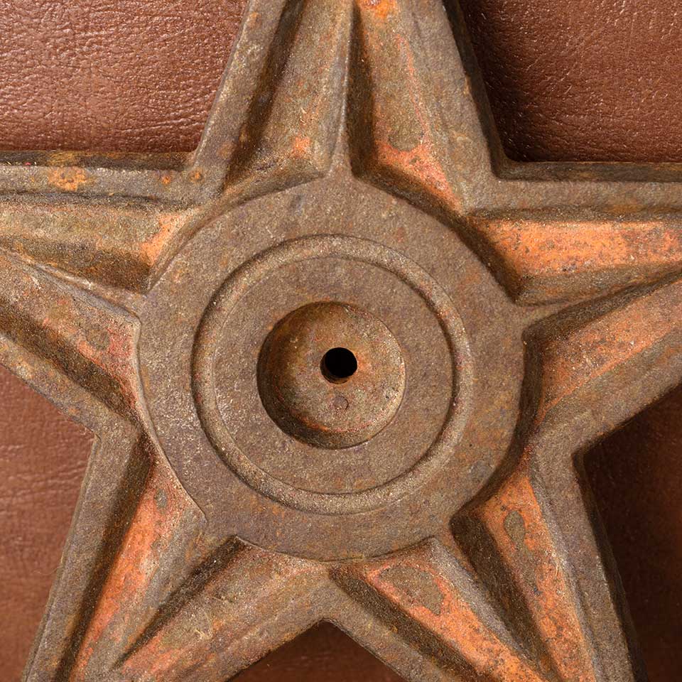 Architectural salvage cast iron exterior building anchor star measuring approx. 6 3/4" in diameter x 1/4" thick. See photos to evaluate condition.