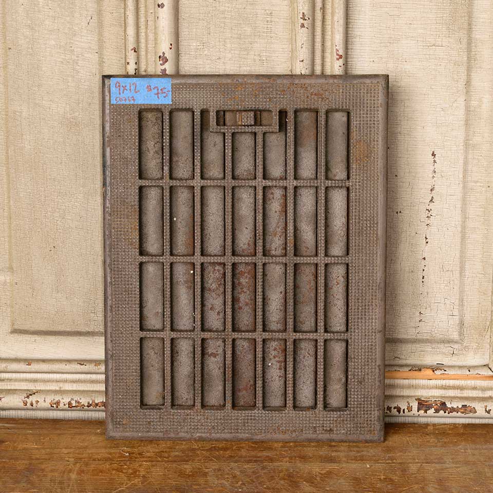 Architectural salvage antique cast iron heat grate floor vent cover with operable louvers measuring approx. 9" x 12" (insert dimensions) and 10 5/8" x 13 13/16" (overall dimensions). See photos to evaluate condition.