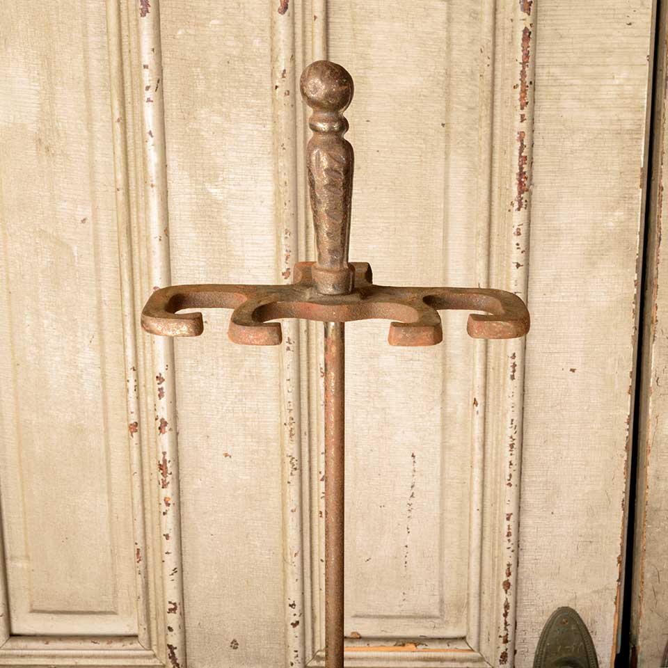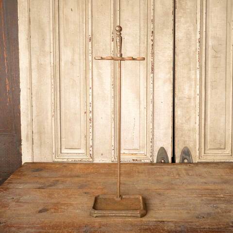 Antique fireplace tool holder stand measuring approx. 8 3/4" wide x 29" tall x 6 1/4" front to back. See photos to evaluate condition.