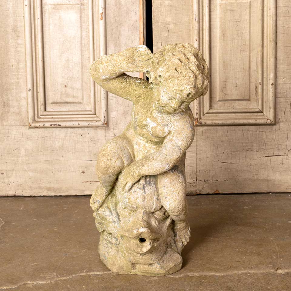 Architectural salvage vintage cast concrete garden fountain statue measuring approx. 9 1/2" wide x 21" tall x 11" front to back. See photos to evaluate condition.