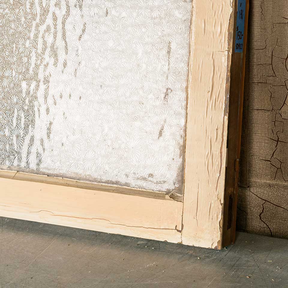 Architectural salvage antique painted wood transom window with Florentine pressed privacy glass measuring approx. 34 1/4" wide x 14" tall x 1 3/4" thick. See photos to evaluate condition.