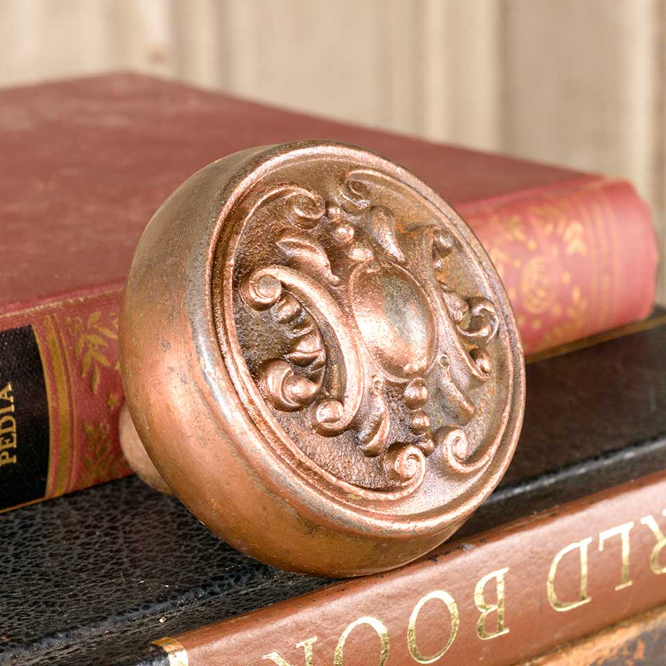 Architectural salvage antique cast iron doorknob door hardware measuring approx. 2 1/4" in diameter with a 3/4" diameter stem. Manufactured by Reading Hardware (Reole pattern circa 1905). See photos to evaluate condition.