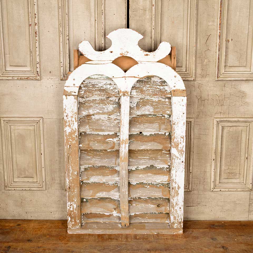 Architectural salvage antique Victorian wood louvered barn vent measuring approx. 25 7/8" wide x 44 3/4" tall x 5" front to back. See photos to evaluate condition.