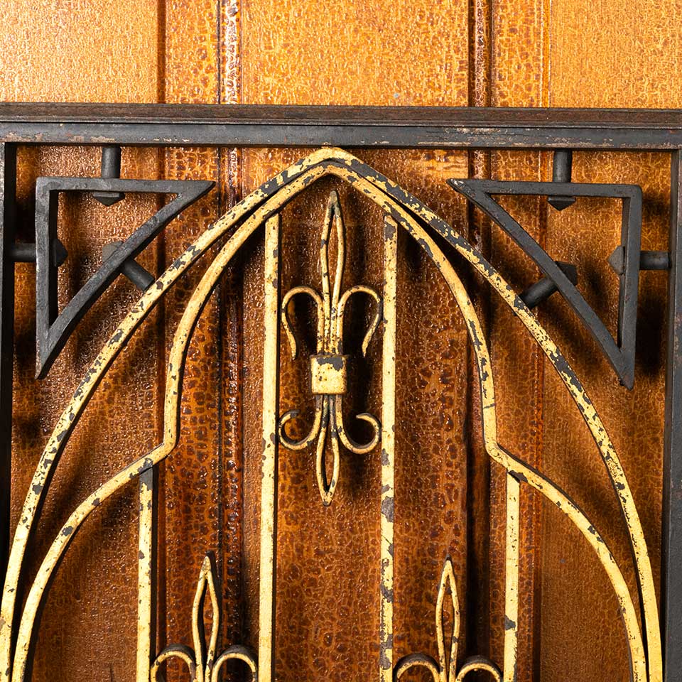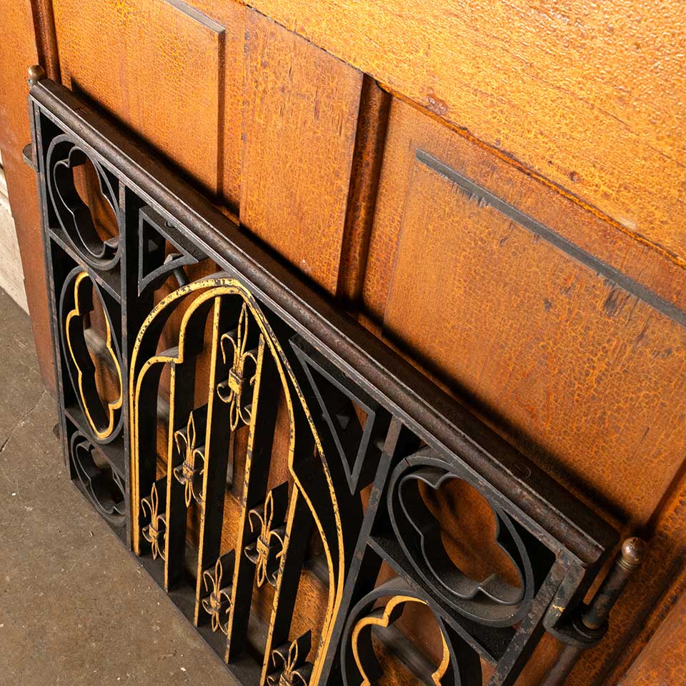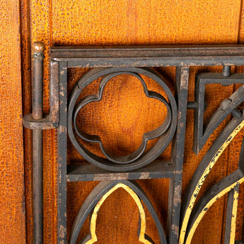 Architectural salvage antique painted cast iron Gothic church altar gate measuring approx. 28 1/4" wide x 23 1/4" tall x 1 1/2" front to back. See photos to evaluate condition.