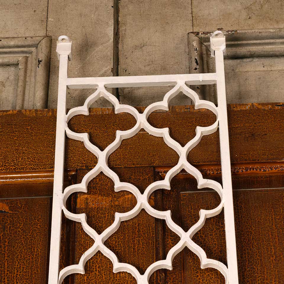 Architectural salvage vintage painted cast iron stairway / staircase vertical railing panel measuring approx. 10 1/4" wide x 97 3/8" tall x 1/2" front to back. See photos to evaluate condition.