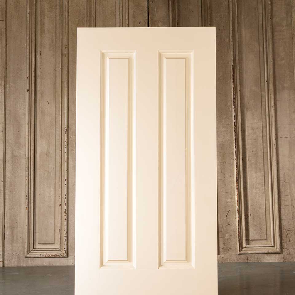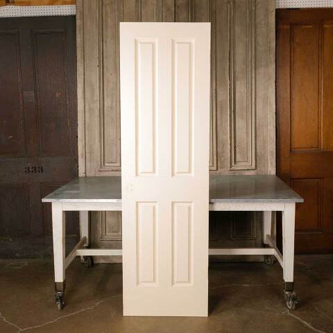 Architectural salvage four panel painted wood interior door measuring approx. 23 5/8" wide x 79 7/8" tall x 1 3/8" thick. This is not an antique door. See photos to evaluate condition.