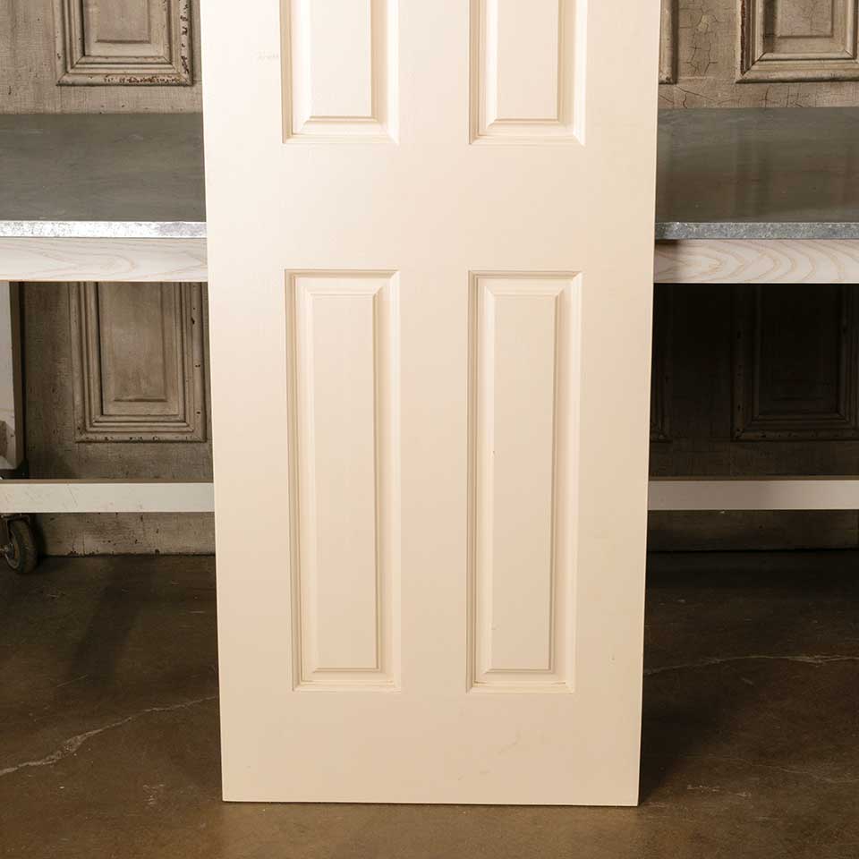 Architectural salvage four panel painted wood interior door measuring approx. 23 3/4" wide x 78" tall x 1 3/8" thick. This is not an antique door. See photos to evaluate condition.