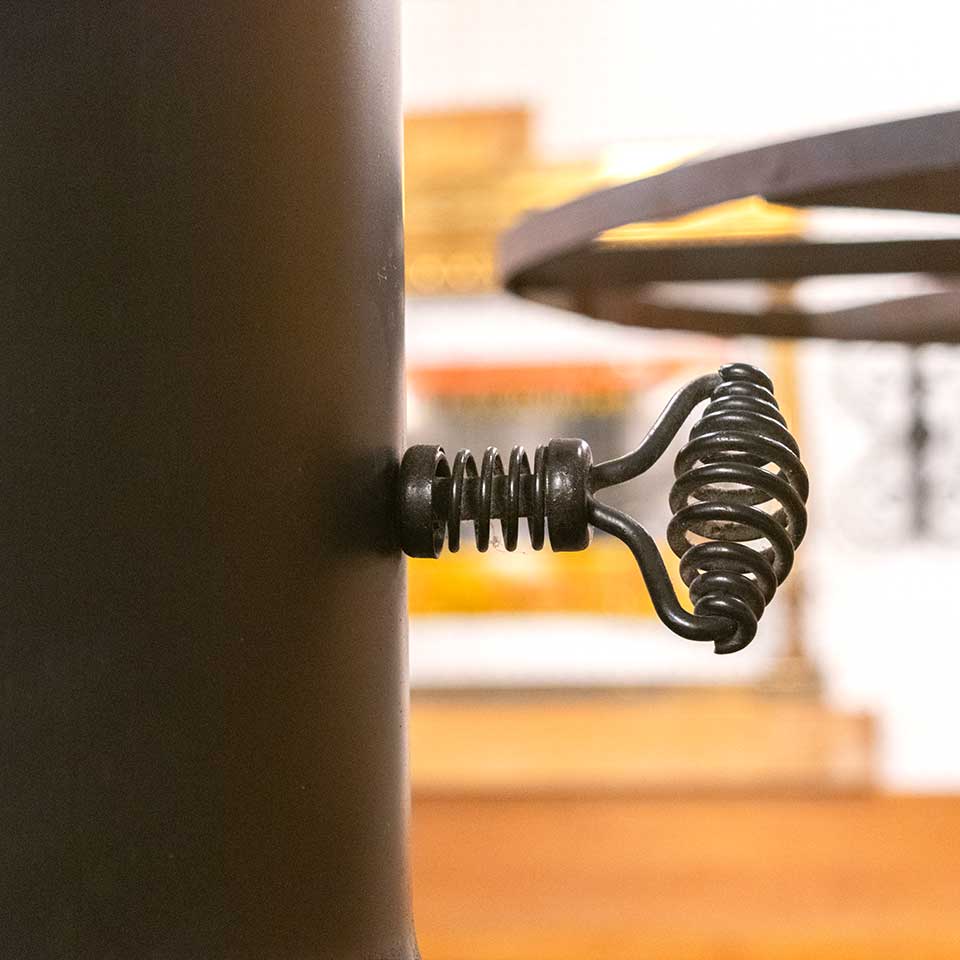 Architectural salvage vintage mid-century modern Majestic Carousel Fireplace measuring approx. 41" in diameter x 45" tall with a 50 1/2" tall flue pipe. See photos to evaluate condition.