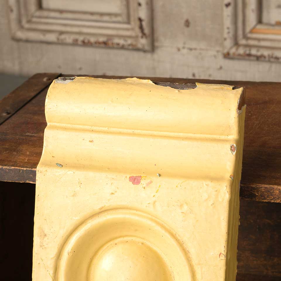 Architectural salvage antique painted wood interior door or window rosette trim block measuring approx. 5 1/2" wide x 11 1/4" tall x 1 1/8" front to back. Color and condition vary.