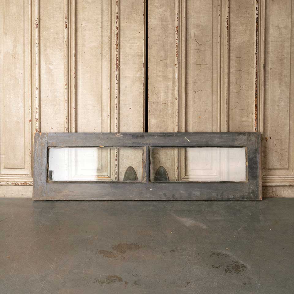 Architectural salvage antique divided two lite wood transom window measuring approx. 39 7/8" wide x 11 5/8" tall x 1 5/16" thick. See photos to evaluate condition.