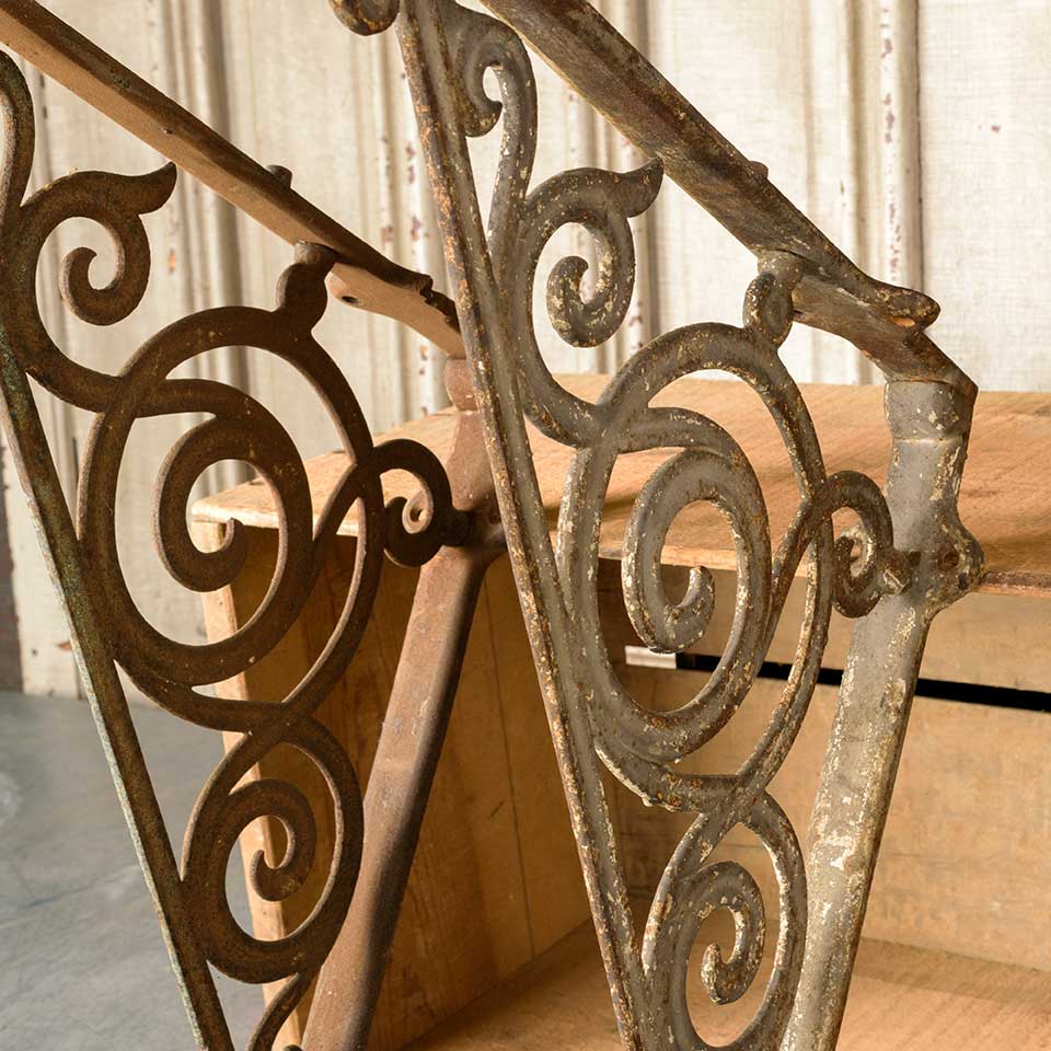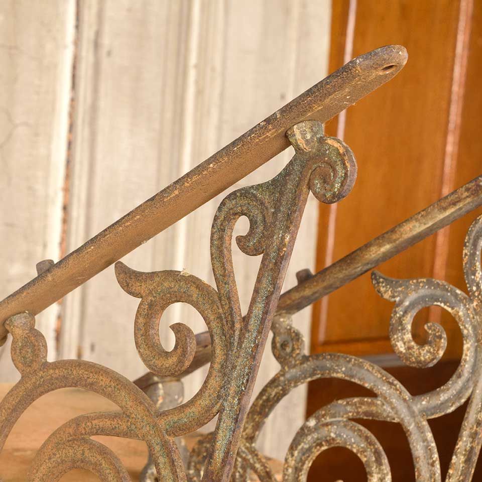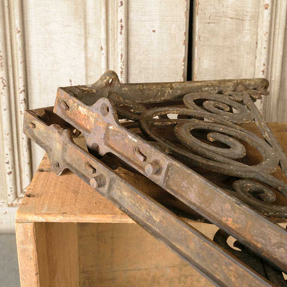Set of architectural salvage antique cast iron bathroom marble top sink brackets each measuring approx. 2 1/2" wide (widest point) x 17 7/8" tall x 15 3/4" front to back. See photos to evaluate condition. Priced at $325 for the two piece set.