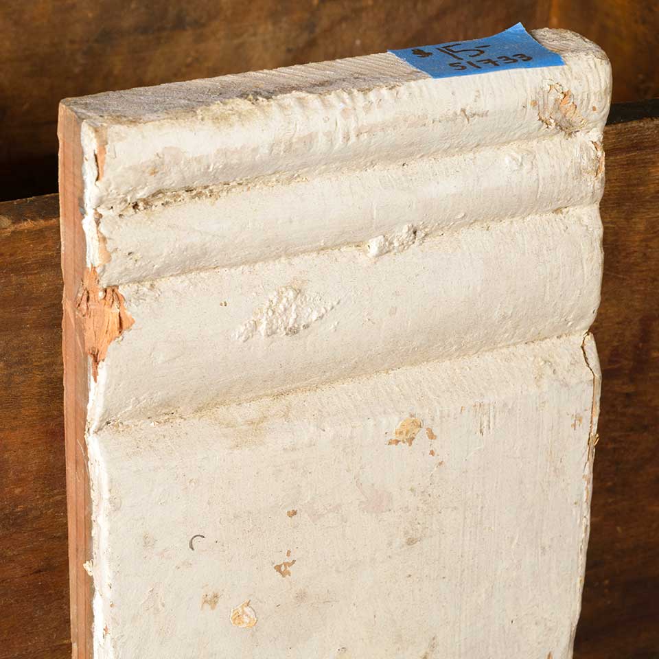 Architectural salvage antique painted wood interior door plinth trim block measuring approx. 5 1/2" wide x 9 1/4" tall x 1 1/16" front to back. Color and condition vary.