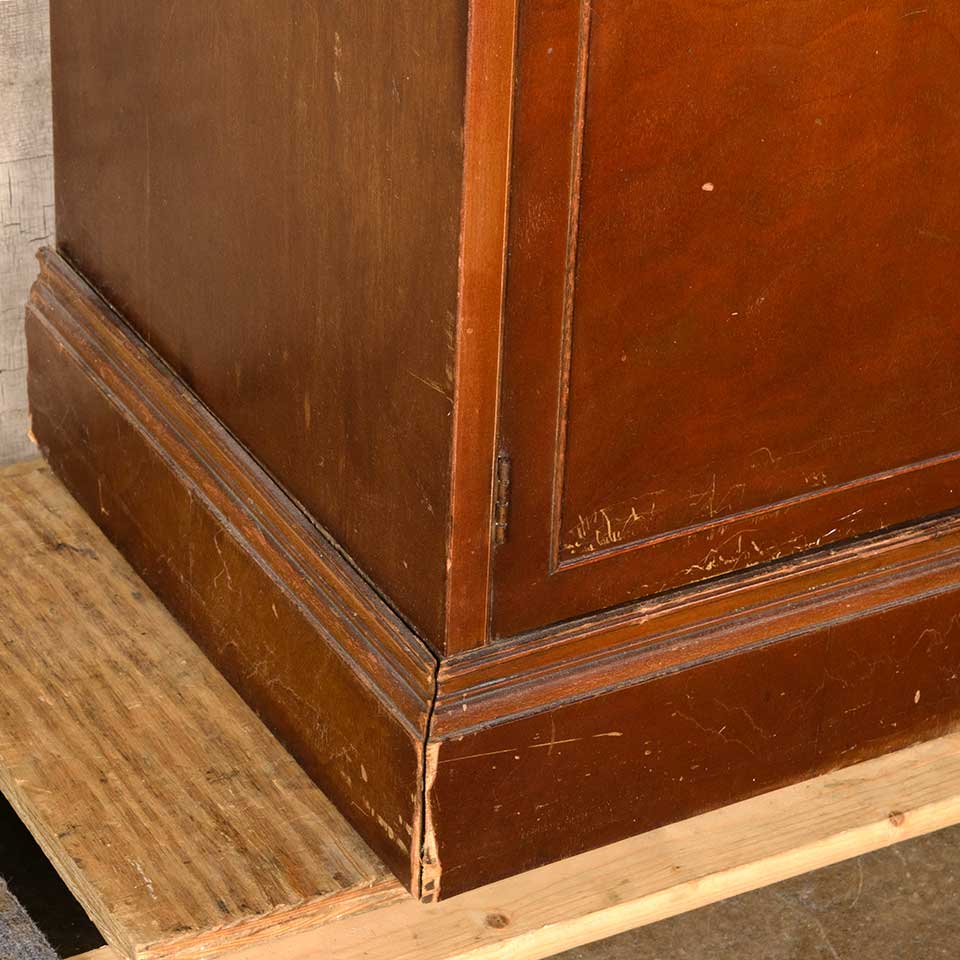 Antique China cabinet measuring approx. 35" wide x 71 3/8" tall x 16 1/4" front to back. There's some wood loss on the corners of the base mouldng. See photos to evaluate condition.