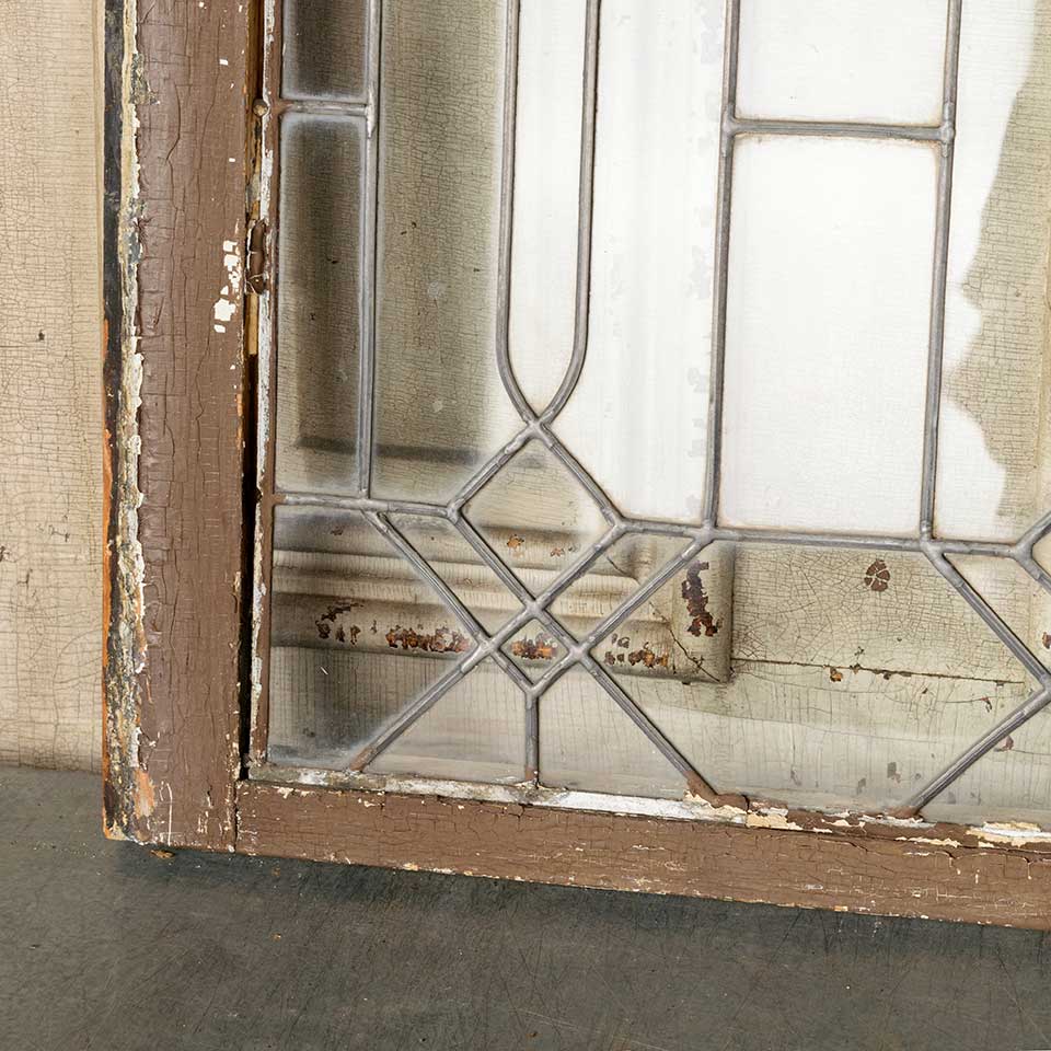 Architectural salvage antique leaded glass window measuring approx. 23 3/8" wide x 20 1/4" tall x 1 3/8" thick. See photos to evaluate condition.