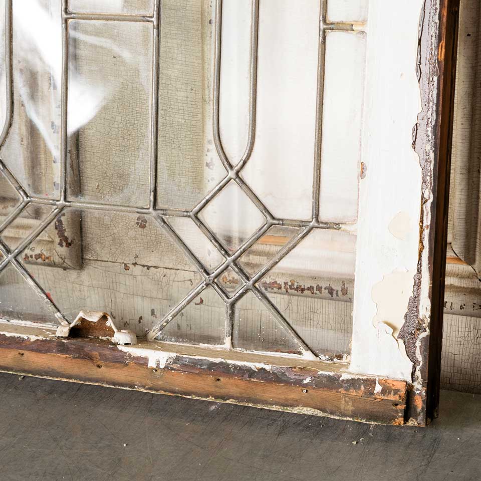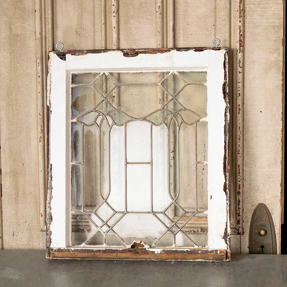 Architectural salvage antique leaded glass window measuring approx. 23 1/4" wide x 20 1/4" tall x 1 3/8" thick. See photos to evaluate condition.