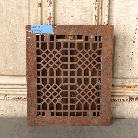 Architectural salvage antique cast iron heat grate floor vent cover with operable louvers measuring approx. 8" x 10" (insert dimensions) and 9 3/4" x 11 3/4" (overall dimensions). See photos to evaluate condition.